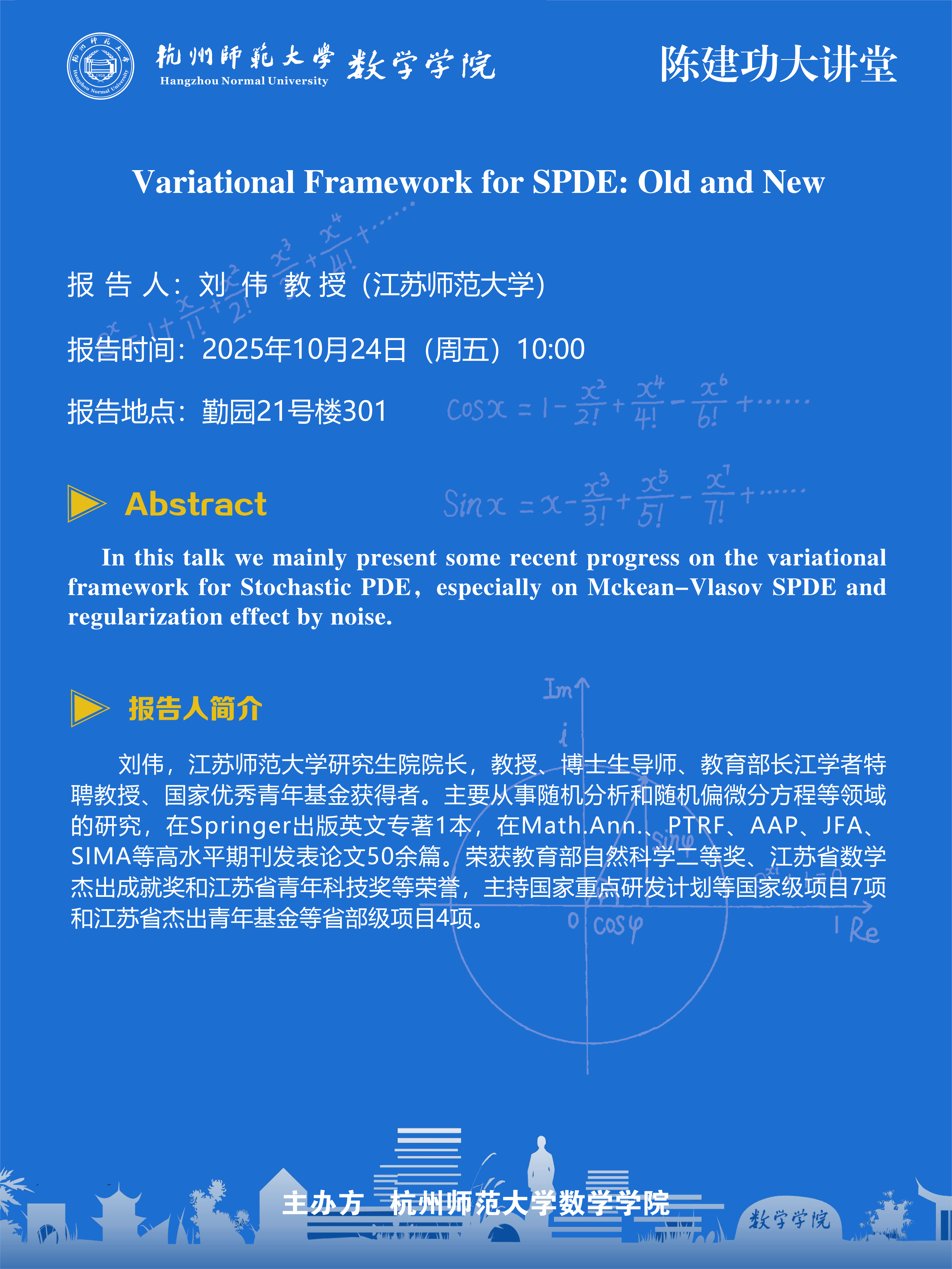 陈建功大讲堂(2025-99):Variational Framework for SPDE: Old and New