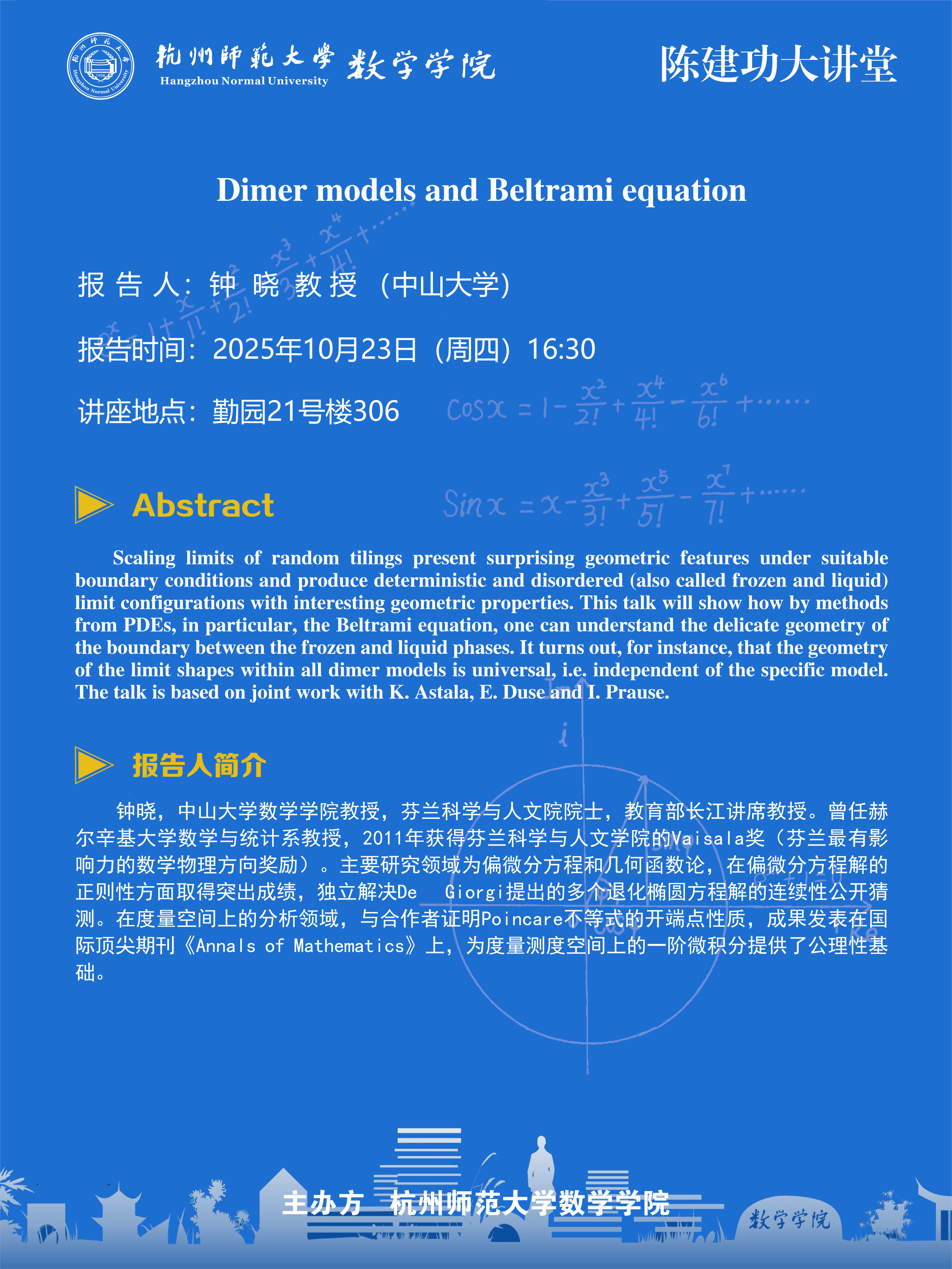陈建功大讲堂(2025-96):Dimer models and Beltrami equation
