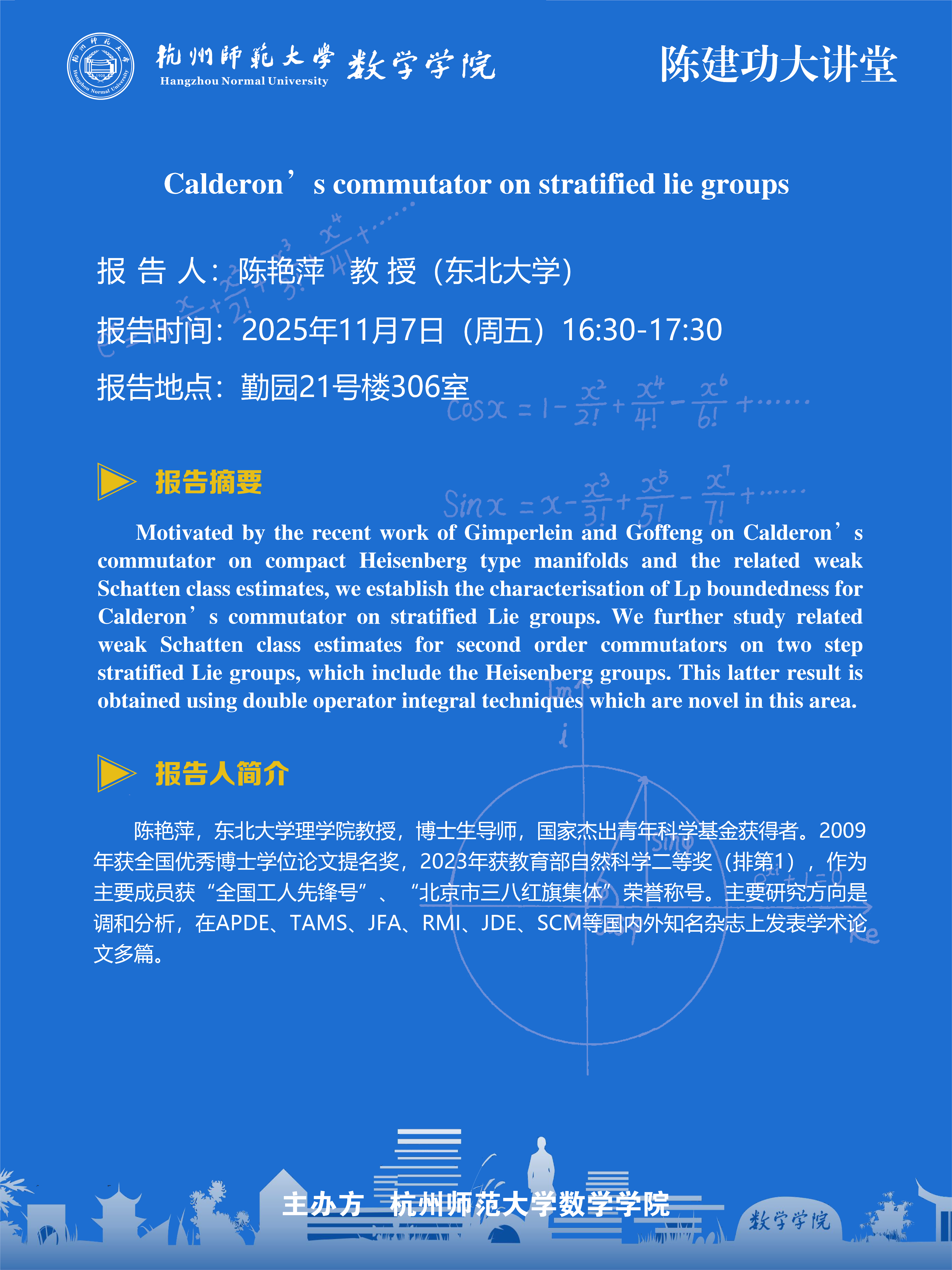 陈建功大讲堂(2025-119):Calderon’s commutator on stratified lie groups