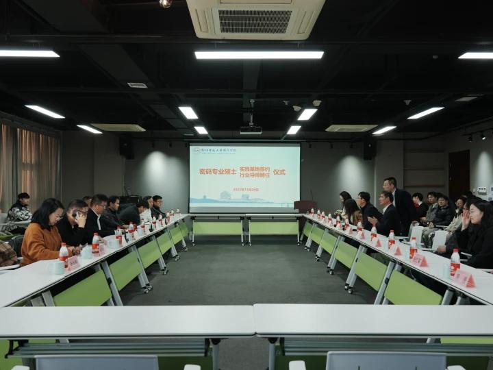 11月26日,为进一步夯实我院密码专业硕士点建设基石,深度推进产教融合发展,学院隆重举行“密码专硕实践基地签约与行业导师聘任仪式”。此次活动不仅标志着学院在密码专业人才培养模式上迈出了创新步伐,更为学院与行业间的紧密合作搭建了坚实桥梁。学院党委书记徐金芳、副院长何济位出席,党委副书记李庆龙主持仪式,密码团队教师及密码专硕研究生等共同参加活动。
