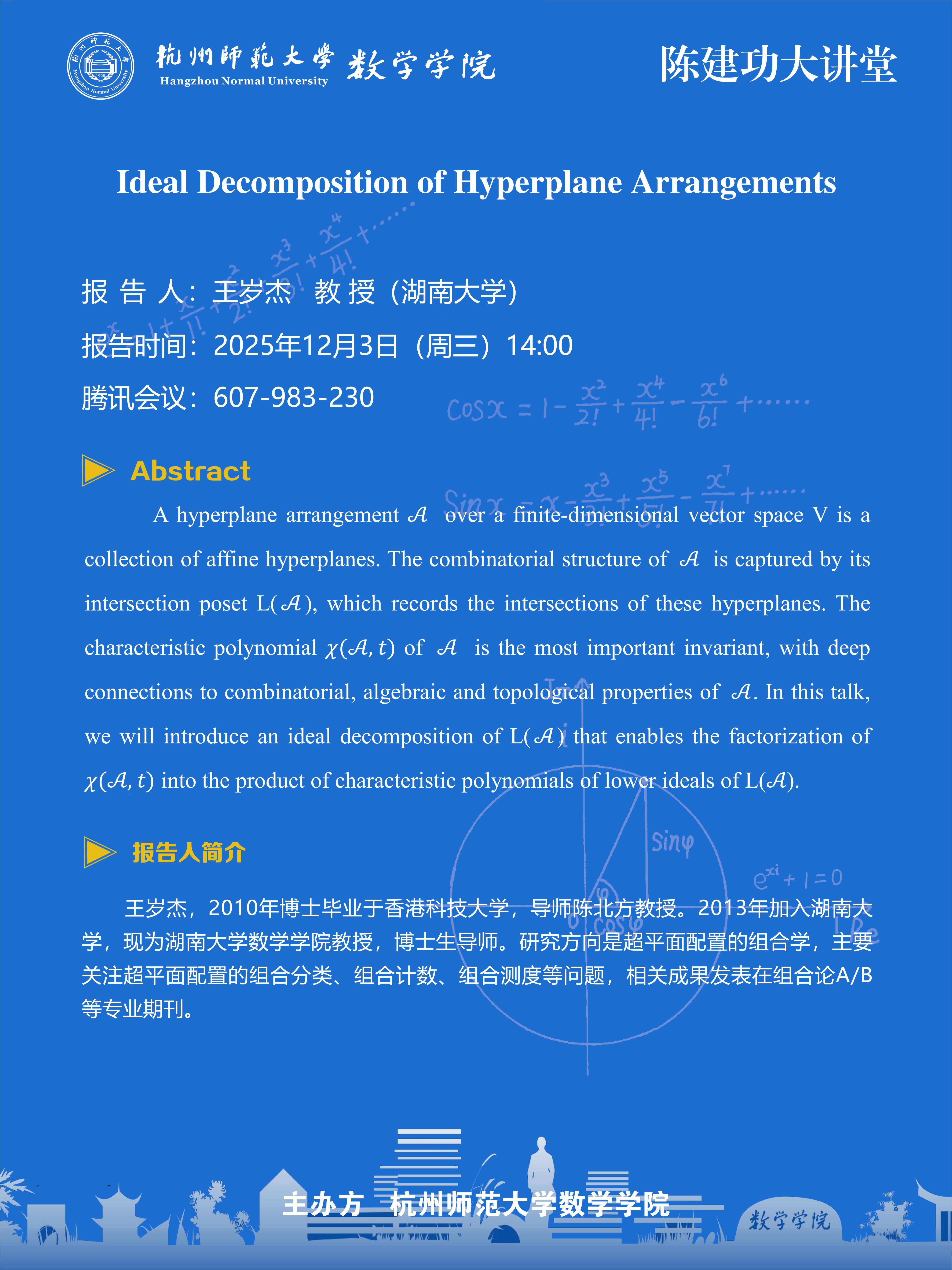 陈建功大讲堂(2025-151):Ideal Decomposition of Hyperplane Arrangements
