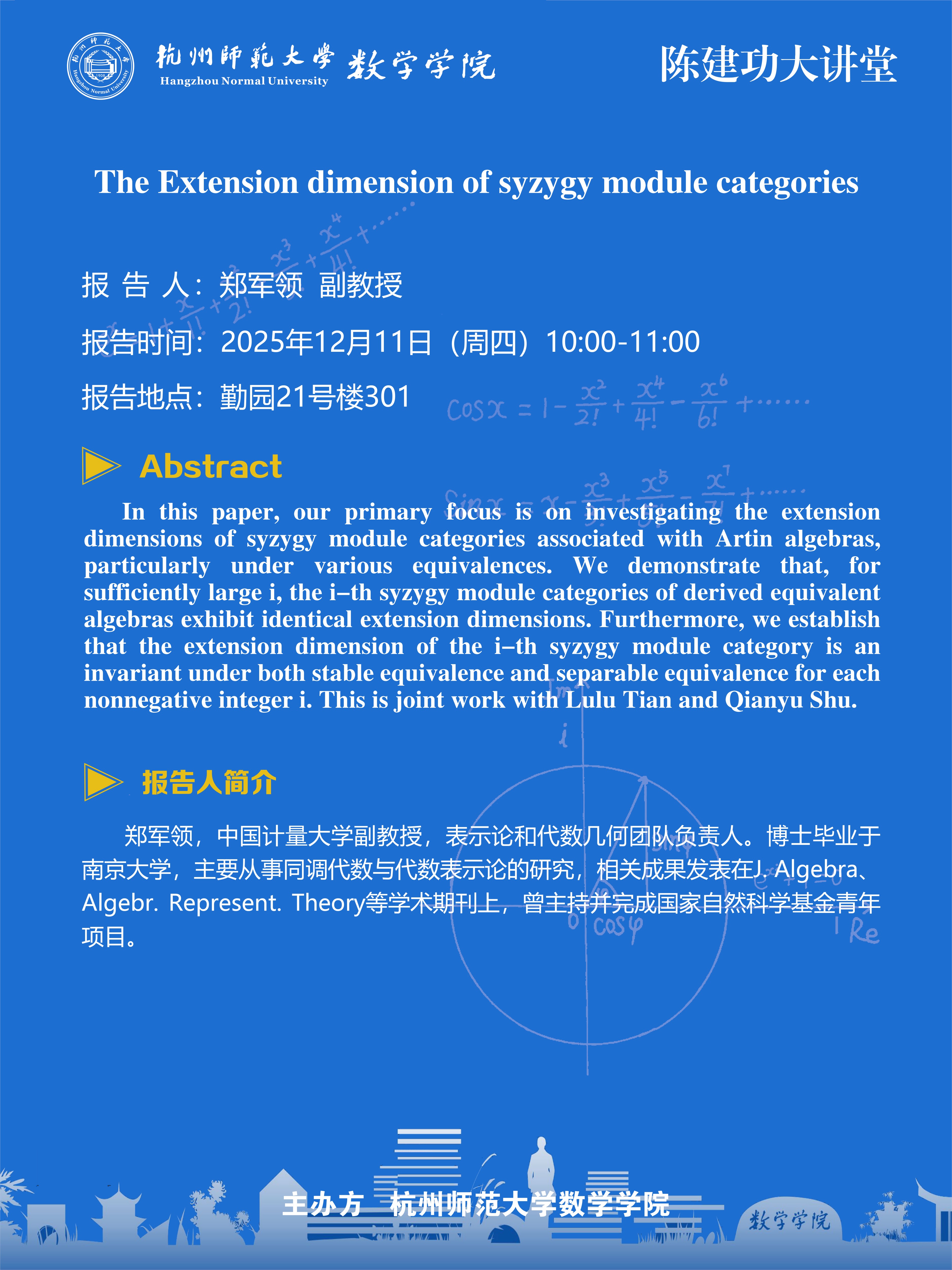 陈建功大讲堂(2025-157):The Extension dimension of syzygy module categories