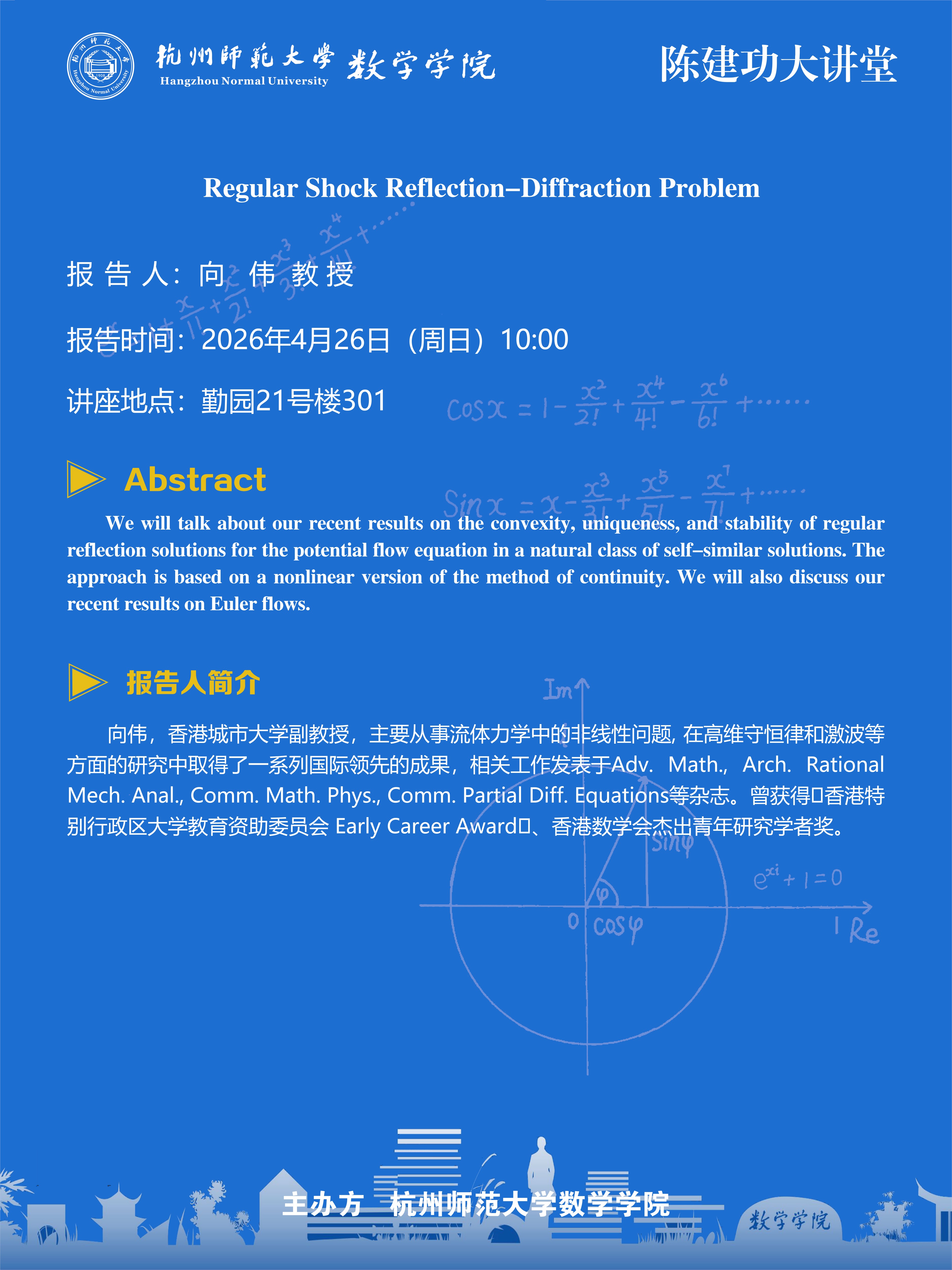 陈建功大讲堂(2026-16):Regular Shock Reflection-Diffraction Problem