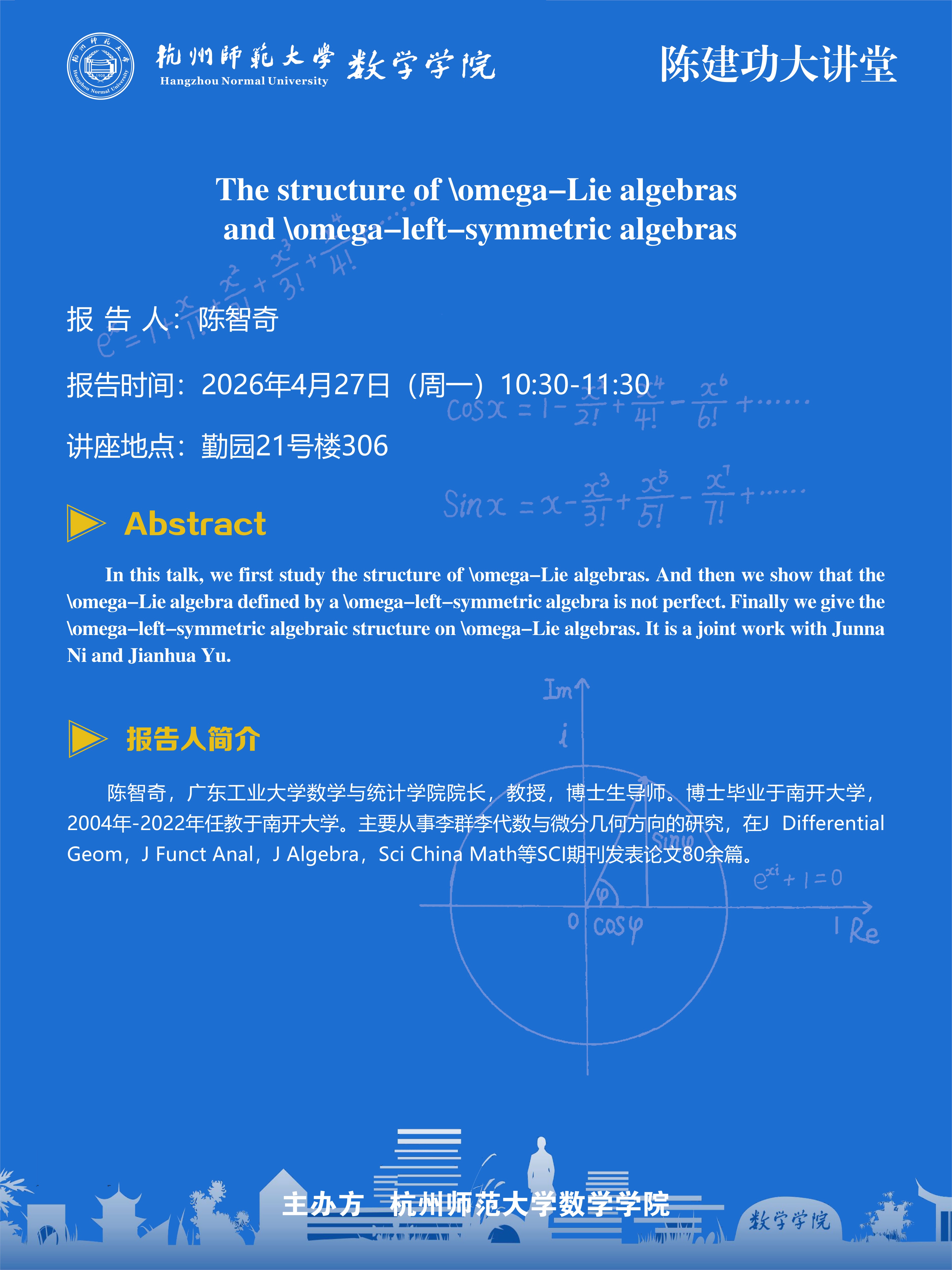 陈建功大讲堂(2026-20):The structure of \omega-Lie algebras and \omega-left-symmetric algebras